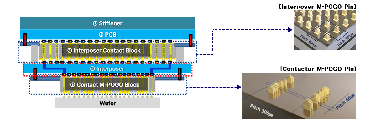 Memory vertical probe card incorporates M-POGO Pin, hybrid Interposer, and MDB (M-POGO Device Block) technology